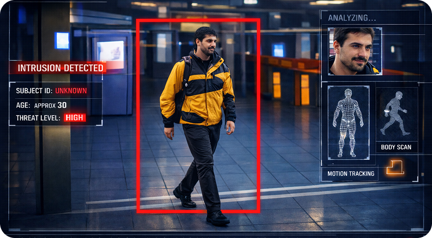 Identify intrusions, loitering, restricted access and unusual movement.